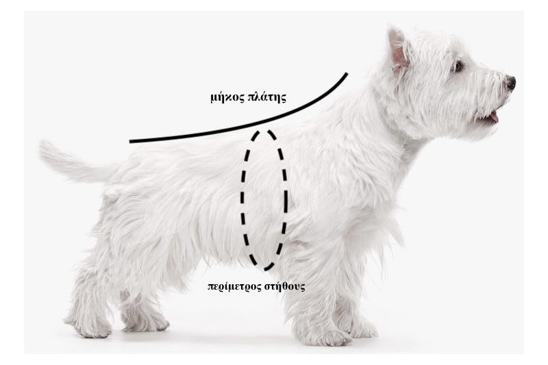 Μετρήστε το πιο φαρδύ σημείο του θώρακα, λίγο πίσω από τα μπροστινά πόδια