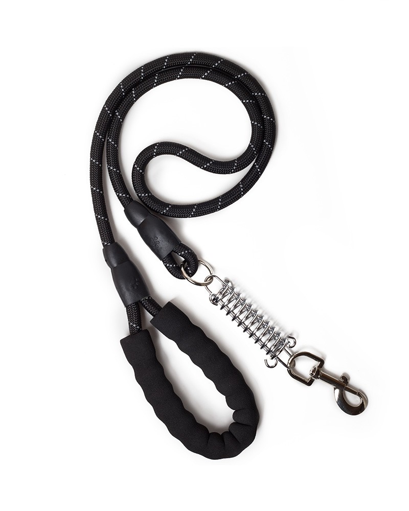Κατασκευασμένος από ανθεκτικό πλεγμένο σχοινί υψηλής ποιότητας, με ενσωματωμένο μεταλλικό ελατήριο που απορροφά τα απότομα τραβήγματα , προστατεύοντας τις αρθρώσεις του σκύλου & του ιδιοκτήτη.