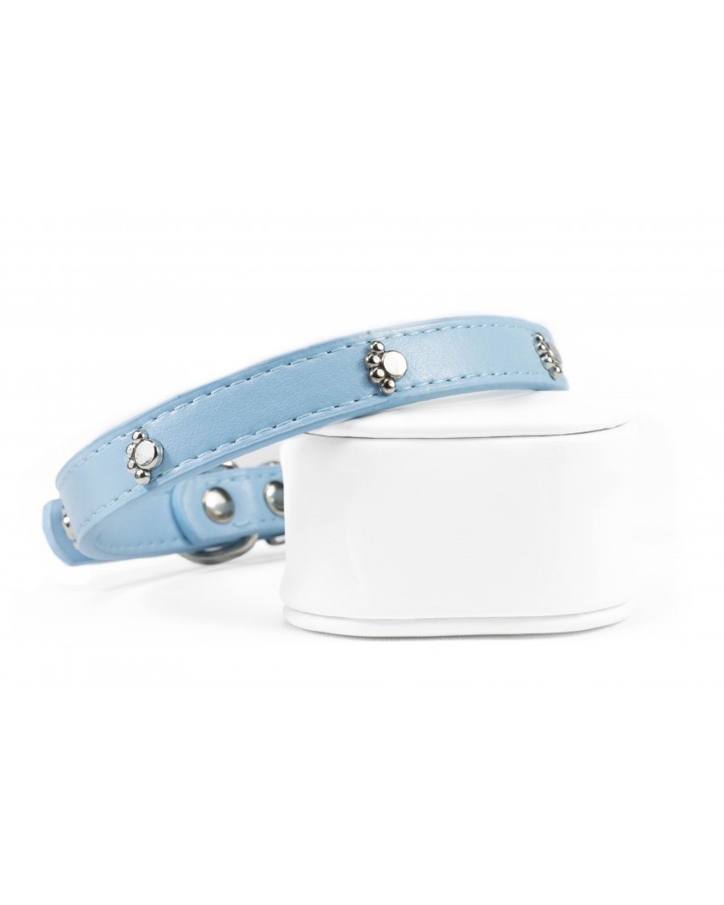 Περιλαίμιο Σκύλου με ασημένια Πατουσάκια-Σε Γαλάζιο