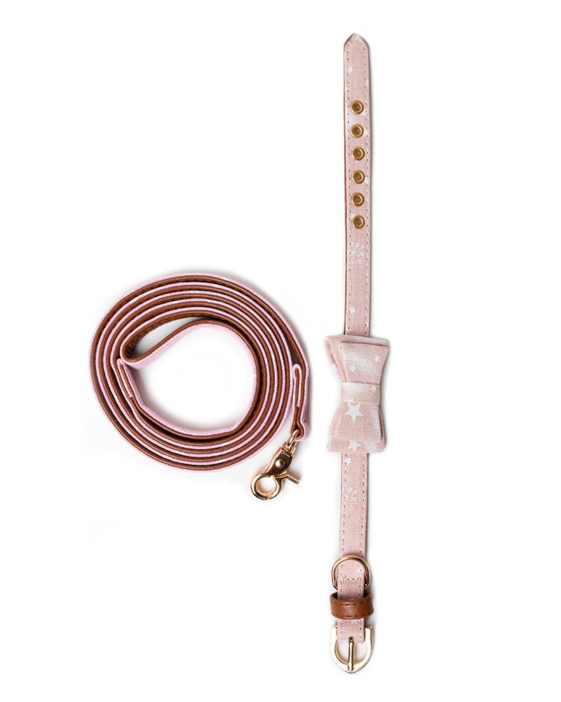 Star style Pet Set Κολαρό με Παπιγιόν & Λουρί-Σε Ροζ