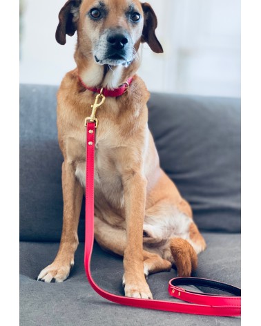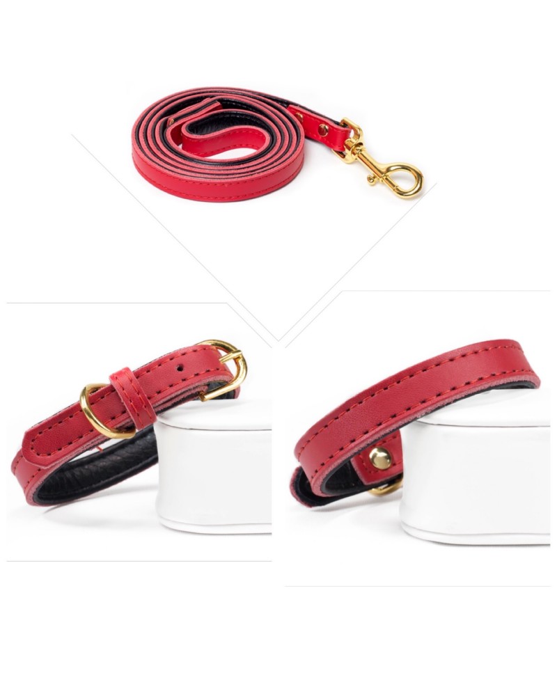 Περιλαίμιο και οδηγός βόλτας σκύλου & γάτας με χρυσή αγκράφα-Σε Κόκκινο