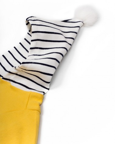 Η ριγέ κουκούλα με το Pom Pom χαρίζει χαρακτήρα, ενώ η ελαστική εφαρμοφή προσφέρει ελευθερία κινήσεων, καθιστώντας τη ιδανική για καθημερινές βόλτες & φωτογραφίσεις!