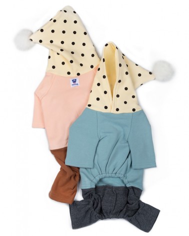 Ανακάλυψε το πιο χαριτωμένο Δίχρωμο Jumpsuit με Πουά κουκούλα, που χαρίζει άνεση, προστασία και στυλ. Ιδανική για μικρόσωμους σκυλάκους.
