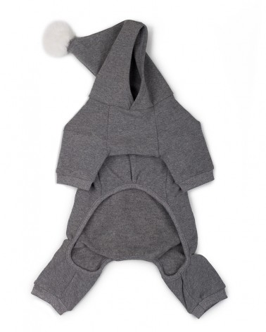 Jumpsuit με Κουκούλα & Pom Pom-Σε Γκρι