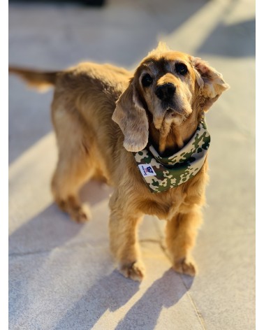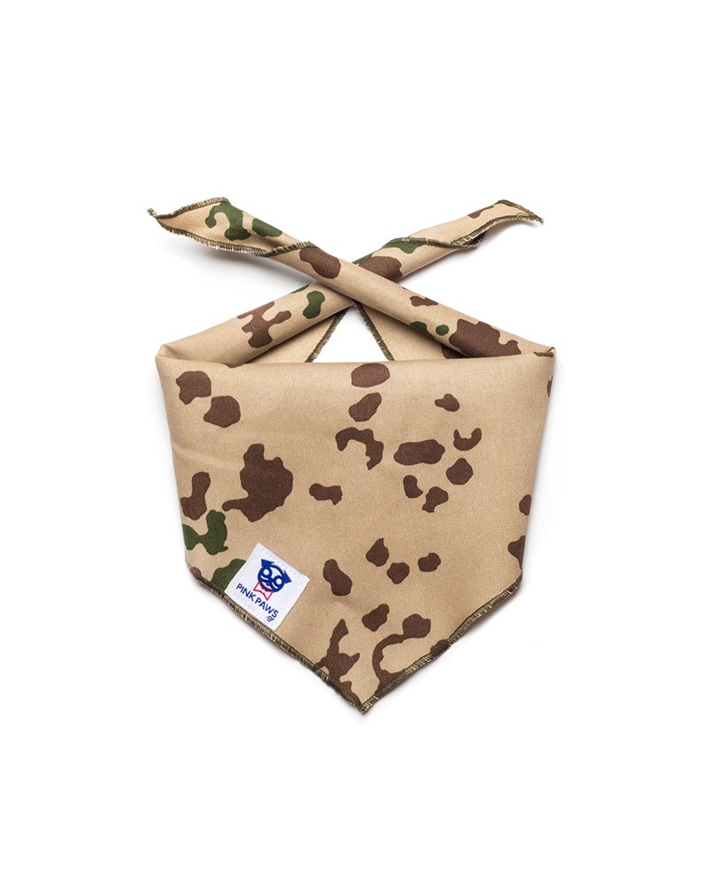 Η Μπαντάνα Pinkpaws σε σχέδιο Military-Χακί είναι το τέλειο αξεσουάρ για σκύλους που αγαπούν τη δράση και τις εξορμίσεις.
