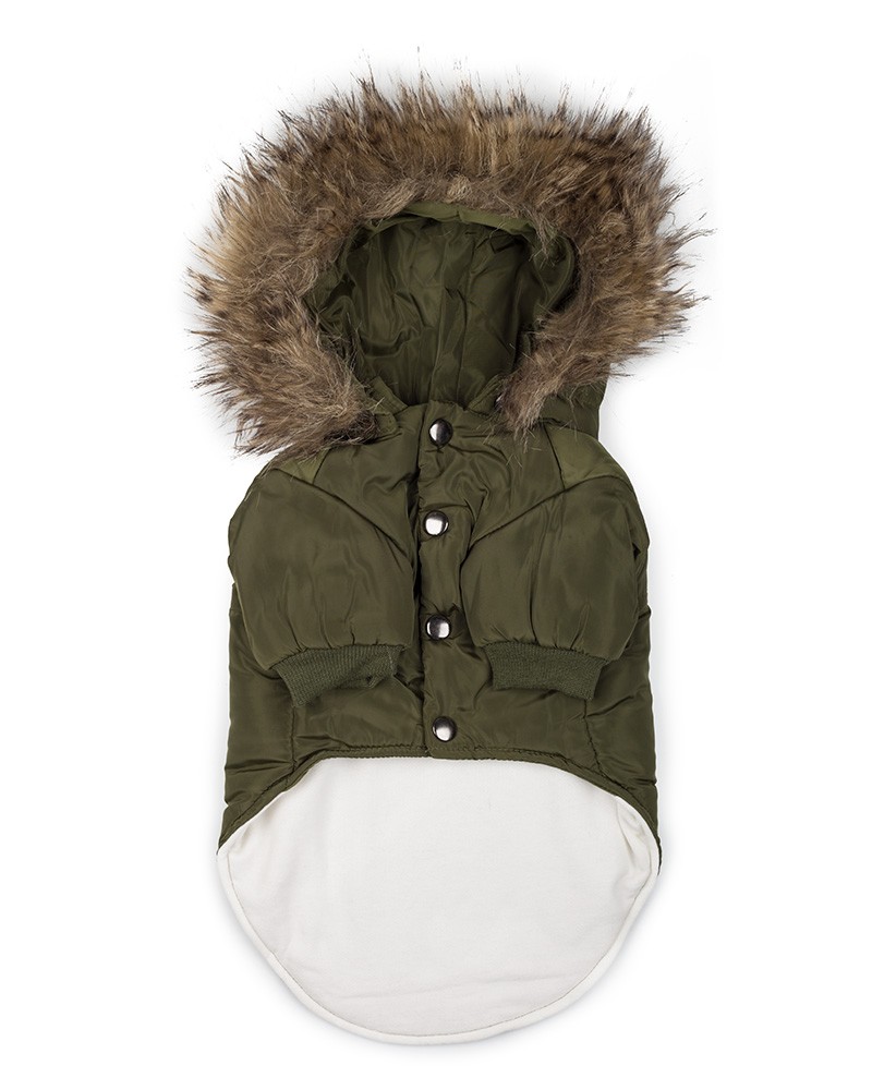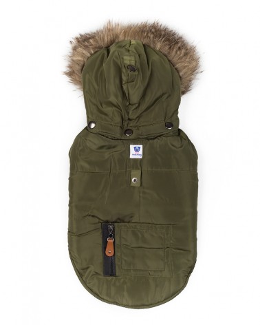 Ανακάλυψε το απόλυτο χειμωνιάτικο αδιάβροχο μπουφάν σκύλου με κουκούλα σε χακί χρώμα.