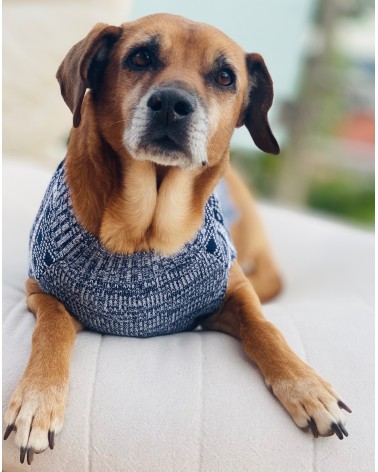 Το ιδιαίτερο μοτίβο ρόμβων και η ουδέτερη παλέτα που το κάνουν ιδανικό για κάθε σκυλάκι που αγαπά το στυλ, ενώ το μαλακό πλεκτό ύφασμα προσφέρει θερμότητα χωρίς να βαραίνει.