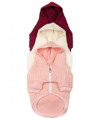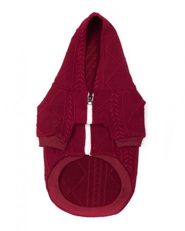 Ζακέτα με Ανάγλυφα σχέδια και Κουκούλα για Σκύλους-Μπορντώ